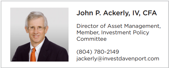 Past performance is not indicative of future results. Diversification and asset allocation does not ensure a profit or guarantee protection against a loss. There is no guarantee that a company will continue to pay dividends. The statements and opinions expressed in this article are those of Davenport Asset Management as of the date of the article, are subject to rapid change as economic and market conditions dictate, and do not necessarily represent the views of Davenport & Company LLC. This article does not constitute investment advice, is not predictive of future performance, and should not be construed as an offer to sell or a solicitation to buy any security or make an offer where otherwise unlawful. Investing in securities carries risk including the possible loss of principal. Individual circumstances vary.