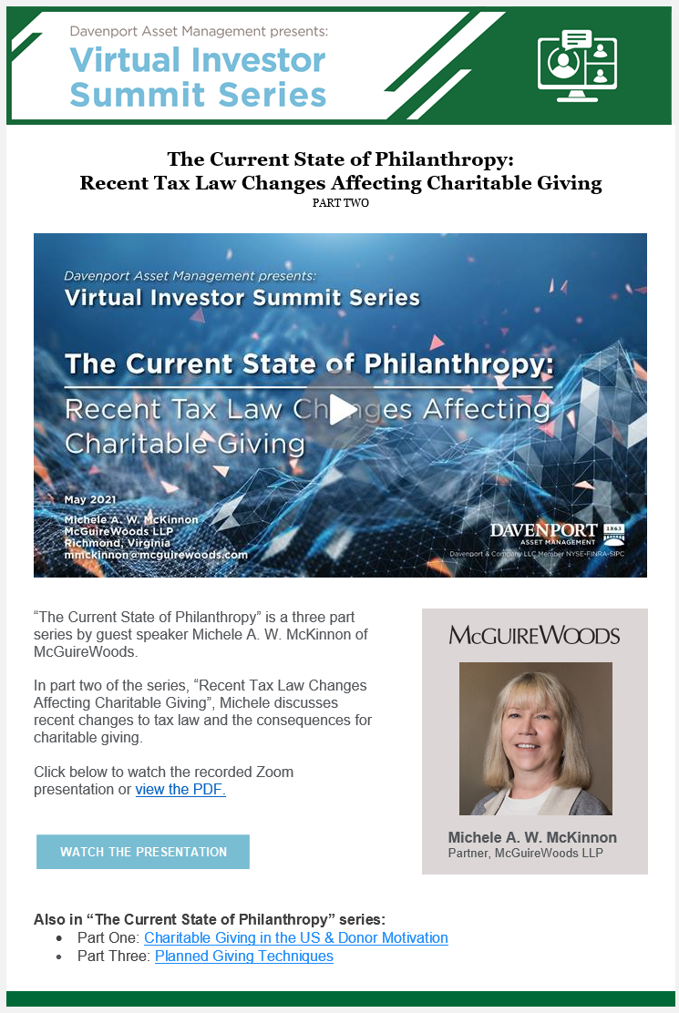Recent Tax Law Changes Affecting Charitable Giving email template