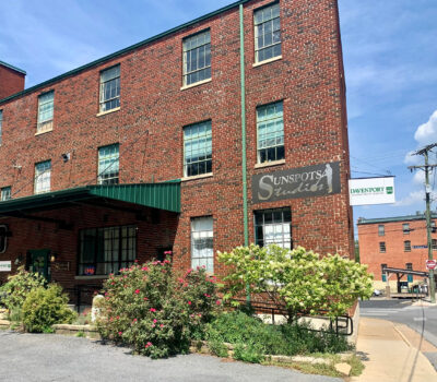 Located on the 2nd floor of Sunspots Studios on the corner of S. Lewis Street and Middlebrook Avenue in the historic downtown shopping and dining district in Staunton, Virginia.