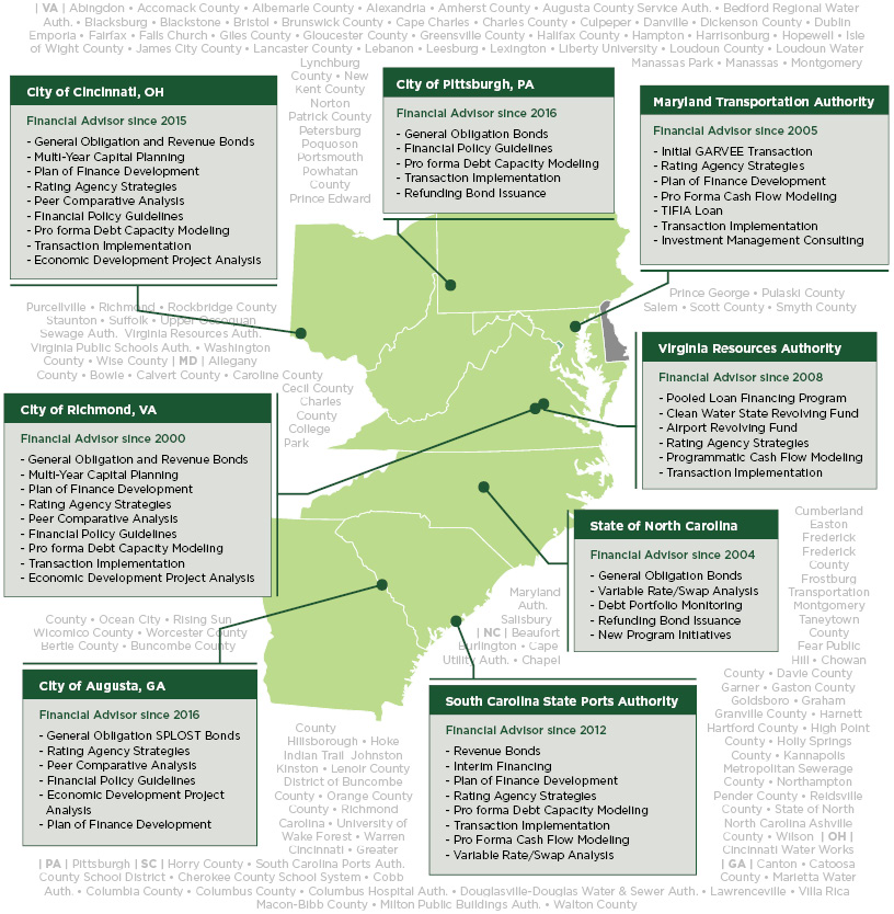 << Back to Public Finance Full Service Advisory Practice – Selected Client Snapshots1 1. Current or historic clients, since 1998 << Back to Public Finance
